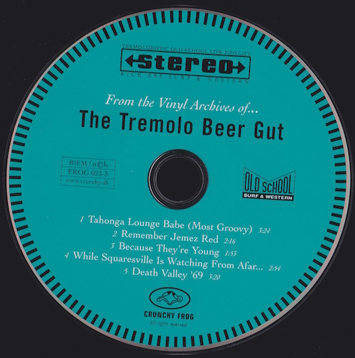 | CD EP featuring tracks previously only available on vinyl releases by The Tremolo Beergut. Tahonga Lounge Babe (Most Groovy) features Jon Spencer and was originally released on Under The Influence of… (LP, DENMARK).The Tremolo Beer Gut would record a version of the Jon Spencer Blues Explosion track Shakin’ Rock ‘n’ Roll Tonight and a few years later Yebo (of The Tremolo Beer Gut) was to perform in the Heavy Trash live band and appears on Going Way Out with Heavy Trash.