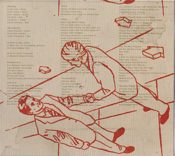 | A&R [Equal Vision] – Matthew Gordner Band [Thursday], Bass – Tim Payne Band [Thursday], Drums – Tucker Rule Band [Thursday], Guitar – Steve Pedulla, Tom Keeley Band [Thursday], Keyboards [Keys] – Andrew Everding Band [Thursday], Vocals – Geoff Rickly Bass, Mixed By, Musician [Thursday Live] – Stuart Richardson Booking [Agency] – Leah Peterson (2), Tim Borror Booking [Live Booking Australia] – Nigel Melder Booking [Live Booking Europe] – Josh Javor, Paul Lomas, Steve Strange (2) Booking [Travel] – Kevin Knapp (4), Ray Applebee, Stephanie Cole Engineer [FOH], Crew [Brooklyn Crew], Recorded By – Marc Hudson Engineer [FOH], Crew [Tour Crew] – David Gaume*, Francois ‘Mido’ El-Alfy*, Mark Arnold, Paul O’Shaughnessy Engineer [Rehearsal] – Billy Perez, Jeff Simoni Guitar, Musician [Thursday Live] – Frank Iero, Norman Brannon Legal [Counsel] – Peter Nussbaum, Ralph Loeb, Tony Doherty Lighting [Lights], Crew [Tour Crew] – Gabriel Flores (3) Management – Paul Clegg Management [Accounting] – Mark Scribner Management [International Taxes] – Eddie Bull Management [Storage] – Tom McGreevy Management [Velocity Records] – Dave Shapiro (3), Matt Andersen (4) Other [Bus Driver], Crew [Tour Crew] – Chris Cox (22), Tyler Long (6) Other [Gear] – Christina Wilson (3), David Gleave, Paula Leftakes Other [Load In Blessing Bestower], Crew [Brooklyn Crew] – Jon Spencer Hitmaker Other [Merch], Crew [Brooklyn Crew] – Cliff Chien Other [Merch], Crew [Tour Crew] – Ewen Friers Stage Manager, Crew [Brooklyn Crew] – Joe Saucedo Technician [Tech], Crew [Brooklyn Crew] – Josh Mihlek Technician [Tech], Crew [Tour Crew] – Craig McQuiston, Justin Scurti, Philip Wallace, Ryan Poelker Tour Manager, Crew [Brooklyn Crew] – Carly Hoskins Tour Manager, Crew [Tour Crew] – Jeff Pereria |