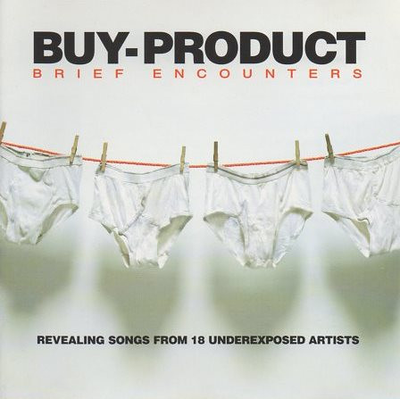 | REAR COVER: “The first Buy Product was so appetizing people started clamoring for more. A guy from Idaho even wrote us to say: “I love you guys. this CD is excellent. You are awesome. Put out another one.” So for just a few bucks, we’re again displaying over 70 minutes of album tracks and b-side rarities from 20 artists for you (and the guy in Idaho). It’s called Brief Encounters this time. And it’s a great collection of single ready-to-wear numbers that still comes with the caveat that you consider going out and buying these artists’ full albums. But since you’re getting another cheap thrill, we feel it kinda evens out, Thus, Buy Product.”