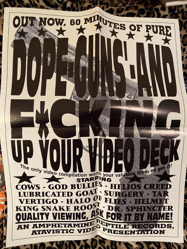 Poster for Dope, Guns & Fucking Up Your Video Deck: Volume One which features Black Throat from Boss Hog the Action Box EP played over the credits.All three volumes of the video series were released on DVD in 2004.