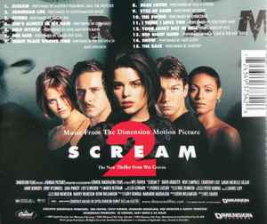 DISC: “Music from the Dimenson Motion Picture. Scream 2. The new thriller from Wes Craven. 7243 8 21911 2 4. Made in EU. (p) 1998 Capitol Records, Inc./Miramax Film Corp. © 1998 Miramax Film Corp. Artwork © 1998 Miramax Film Corp. All rights of the producer and of the owner of the recorded work reserved. Unauthorised copying, hiring, renting, public performance and broadcasting of this recording prohibited.”