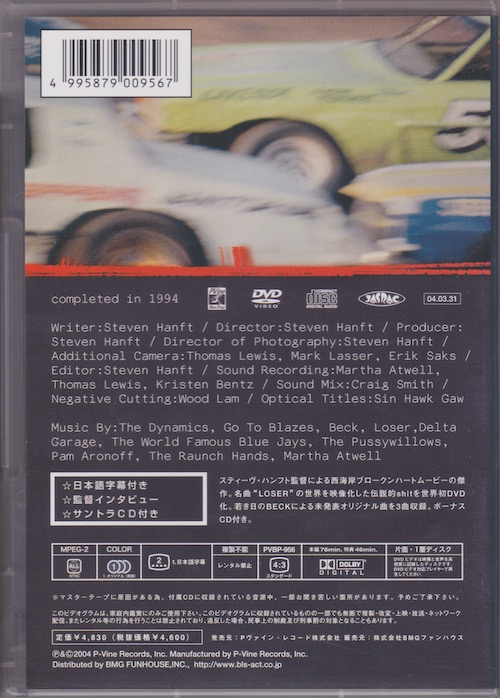 “A contenda to the ranks of bargain-basement breakout hits like STRANGER THAN PARADISE… wise, moody, and graced with kinetic camera work.” – LA Weekly. A twisted mid-90s comedy disguised as a 1970s drive-in film. KILL THE MOONLIGHT is the story of Chance-fish hatchery worker, toxic waste cleaner and aspiring racecar driver, whose goal in life is to fix up his Camaro and follow his dreams of championship glory. Director Steven Hanft captures the West Coast slacker vibe with laconic pacing, bizarre humour and a stock-car-racing hero, who is also happened to provide the inspiration behind Becks’ 1994 hit, “Loser”. Included with KILL THE MOONLIGHT is its long-out-of-print soundtrack CD, which features three exclusive Beck songs and three never-before-released tracks by the band Loser featuring Beck and Steven Hanft. [Booklet also includes a history of the film written by Steve Hanft] |