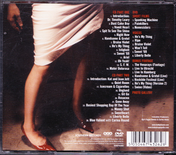 Executive Producers: Carlos Anaia / Kurt-Pagan Davies Liner Notes: Everett True / Jon Slade / Kathleen Hanna / Kurt-Pagan Davies / Lydia Lunch / Thurston Moore 01. Dr. Timothy Leary – Introduction 02. Babes In Toyland – Dust Cake Boy 03. Babes In Toyland – Vomit Heart 04. Babes In Toyland – Spit To See The Shine 05. Babes In Toyland – Right Now 06. Babes In Toyland – Handsome & Gretel 07. Babes In Toyland – Bruise Violet 08. Babes In Toyland – He’s My Thing 09. Babes In Toyland – Istigkeit 10. Babes In Toyland – Sweet ’69 11. Babes In Toyland – Ariel 12. Babes In Toyland – Oh Yeah! 13. Babes In Toyland – S. F. W. 14. Babes In Toyland – Mater Dolorosa 15. Kat And Joan Jett – Introduction 16. Sugar Babylon – Quiet Room 17. The Italian Whorenuns – Icecream & Cigarettes 18. Crunt – Unglued Writers: Crunt 19. Katastrophy Wife – Git Go 20. Katastrophy Wife – Rosacea 21. Katastrophy Wife – Gone Away 22. Katastrophy Wife – Busiest Shopping Day Of The Year 23. Katastrophy Wife – Money Shot 24. Katastrophy Wife – Sweetheart 25. Katastrophy Wife – Liberty Bell 26. Katastrophy Wife With Carina Round – Blue Valient DVD: 16. Crunt – Swine (Video) Writers: Crunt 17. Photo Gallery |