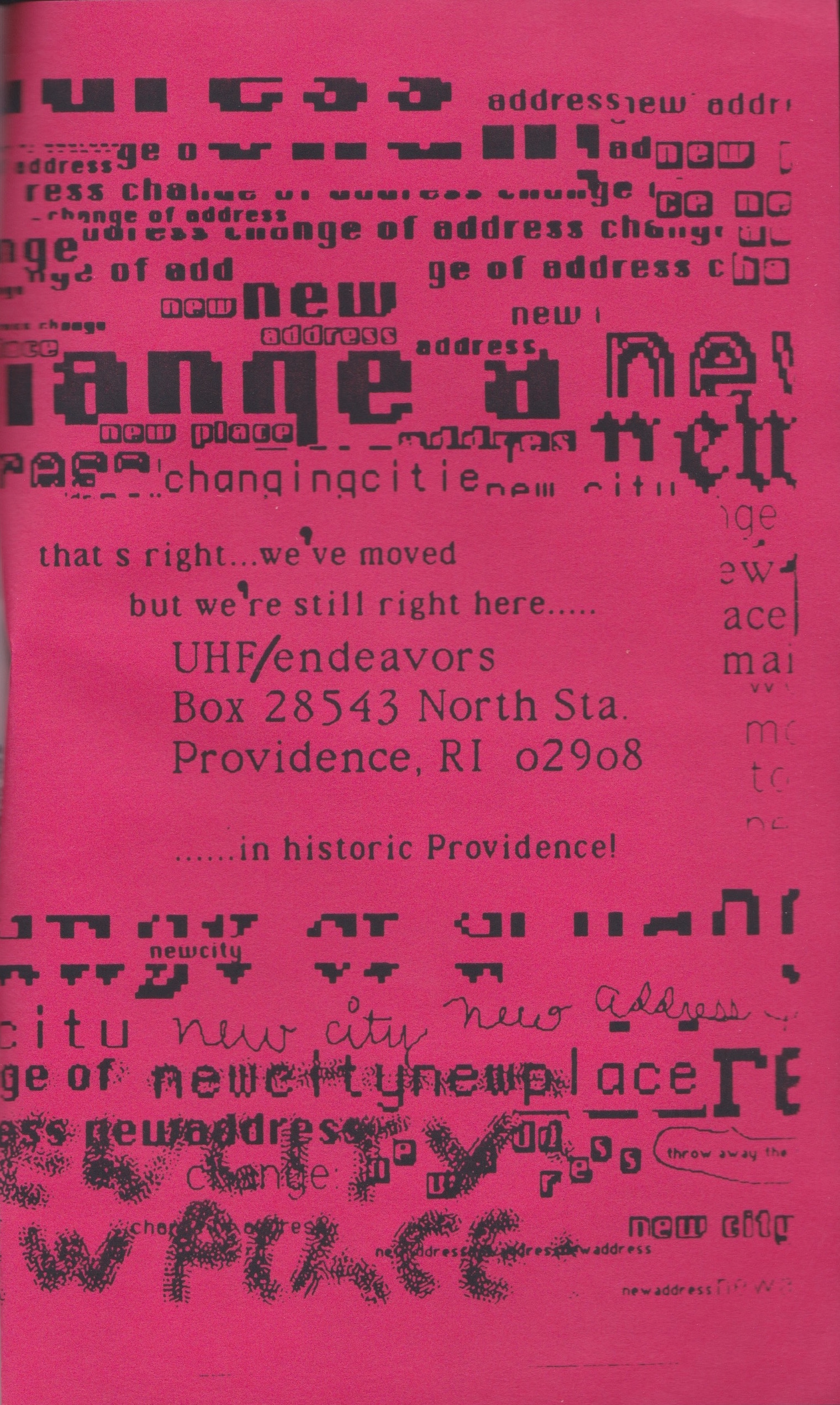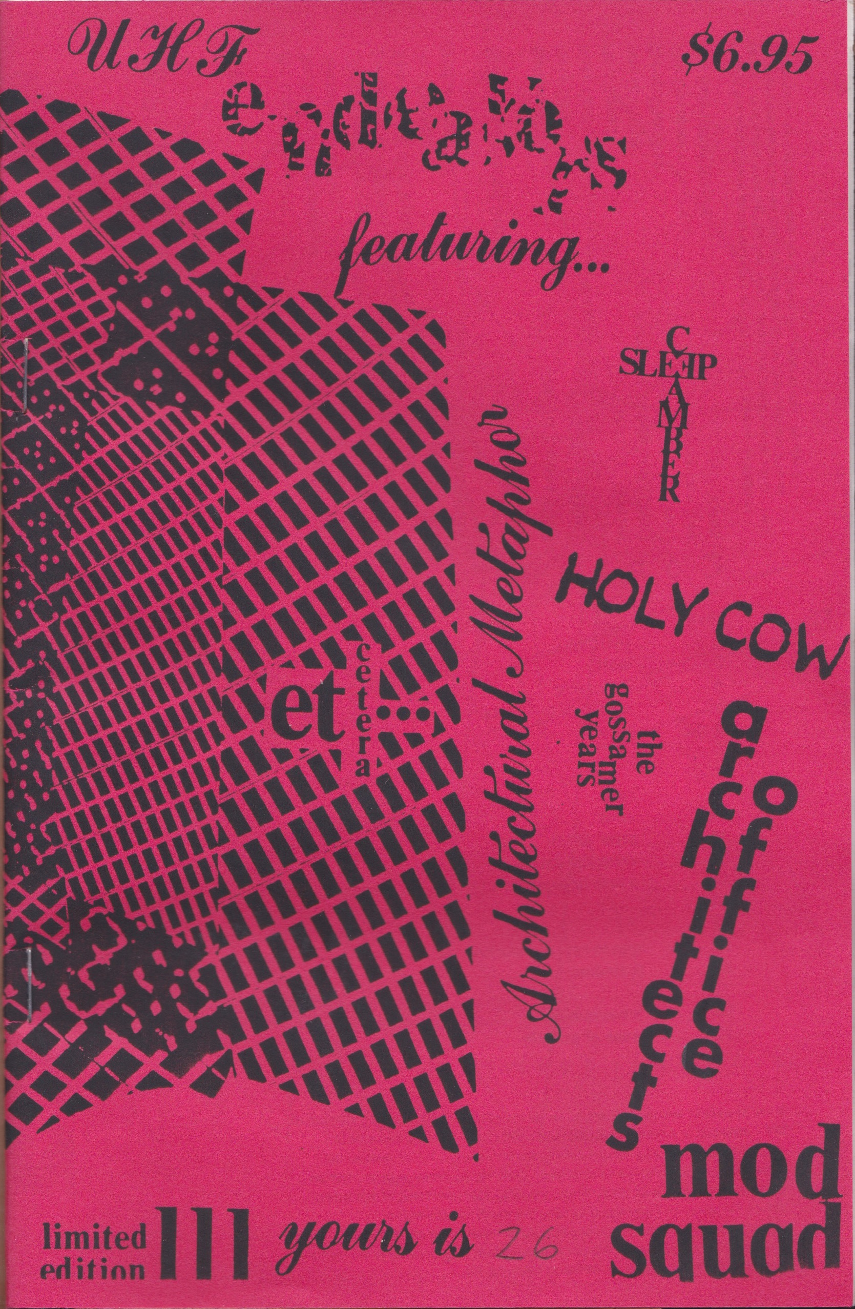 | “A lot of people are to be thanked for their effort in making this edition of UHF, endeavors become real MR Curt and Chuck U were extremely supportive in the early days, finding and providing a lot of wonderful material, encouraging me to continue, John McSweeny was almost an instrumental source of inspiration. Finally, Joel Haertling of Architects Office far away in Colorado provided the much needed support at the time when UHF / endeavors may have floundered and drowned. Thanks also to Unsound Magazine, my patient wife Sue, everyone in Architectural Metaophor and the people at WMFO in Medford, MA.” | |
