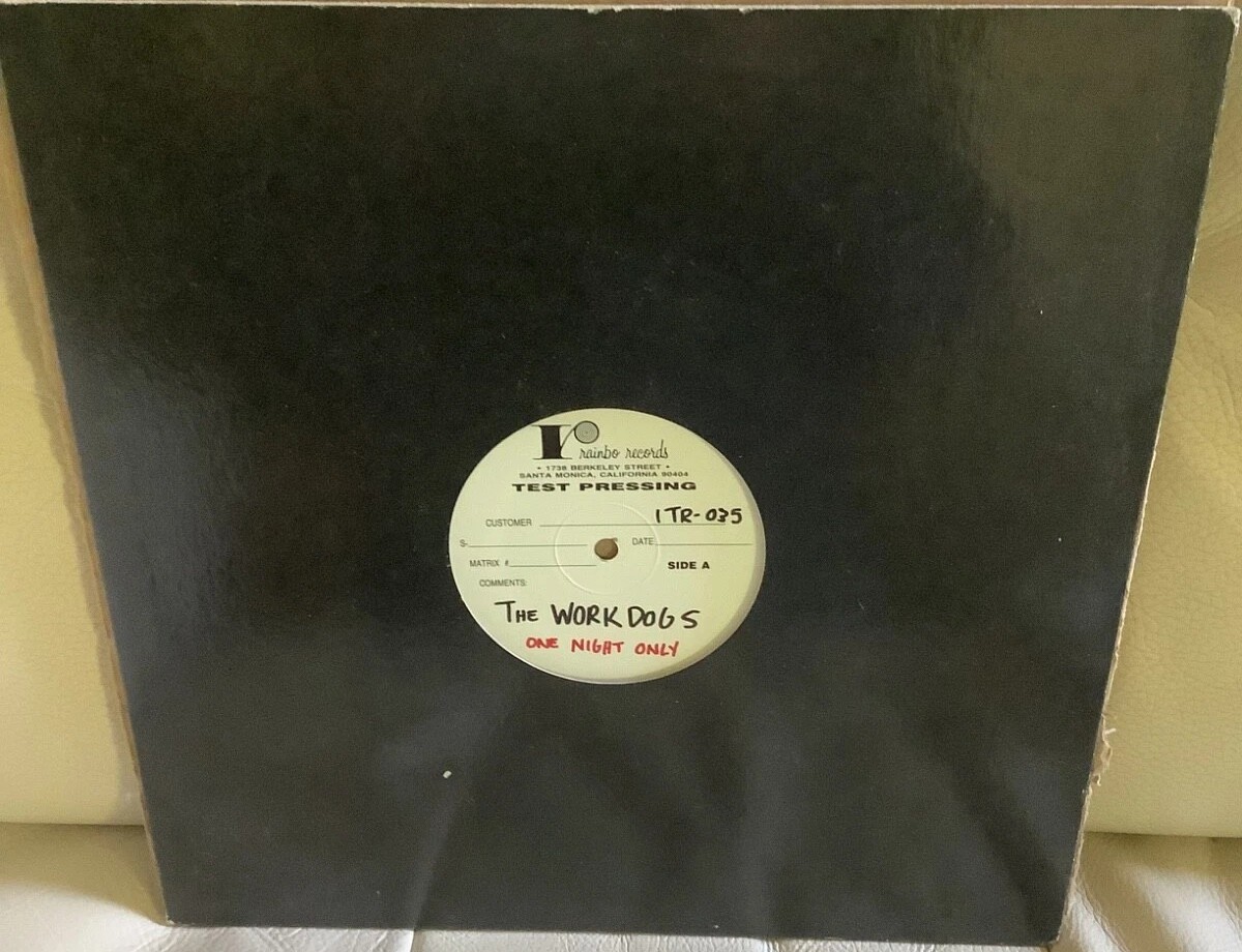 | Test pressing for Workdogs – One Night Only live LP on black vinyl with die-cut white paper inner sleeve, issued much later as an expanded download version.