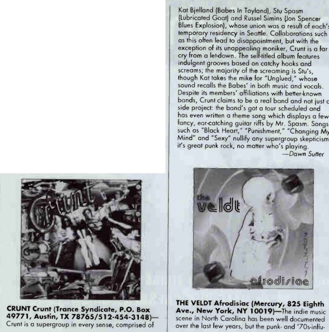 | Review of the Crunt debut album (Commercially available on Blue Vinyl, Black Vinyl, Cassette and CD). |